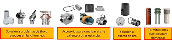 - Accesorios para solucionar o corregir excesos de tiro que puedan tener instalaciones de chimeneas (pulsa aquí para acceder)