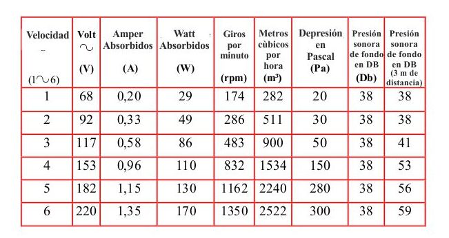 • Caudal de aire que evacúan a la hora: Desde 282 a 2.522 m3/h