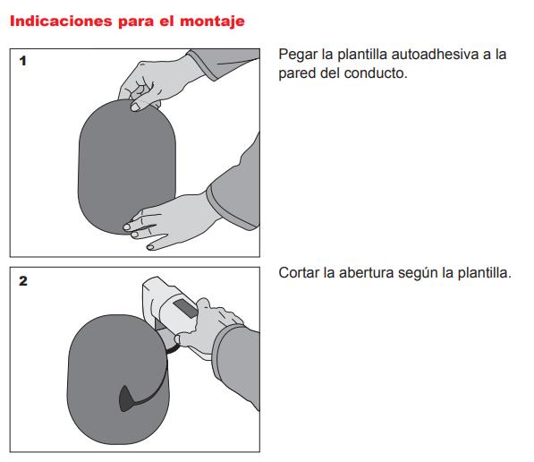 - Cada tapa incorpora un adhesivo que indica dónde hacer el corte del tubo exactamente para poder colocar sobre él la tapa curvada.